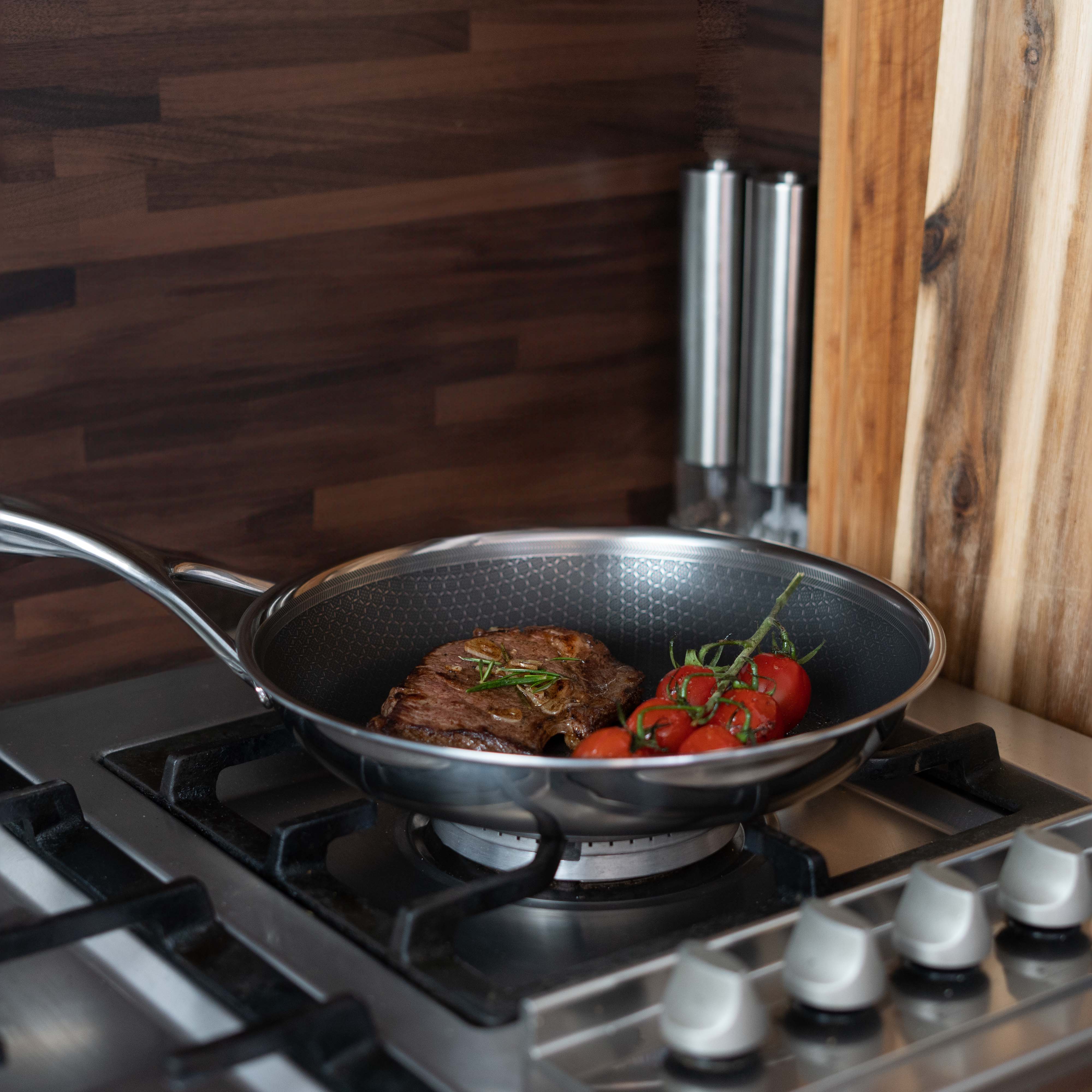 The triple construction of the Matero Cookware Hybrid Frying Pan ensures fast and even heat distribution, which is essential for consistent cooking. The aluminum core, surrounded by stainless steel, ensures that the pan heats up quickly and retains heat without hot spots. This means that your food cooks evenly, which makes all the difference when preparing delicate and complex recipes.